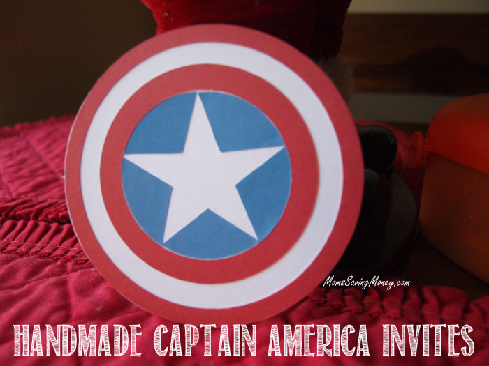 Start off with a Captain America Shield Invitation. You can get the SVG, PNG, PDF file for FREE in the Moms Saving Money Party Store.