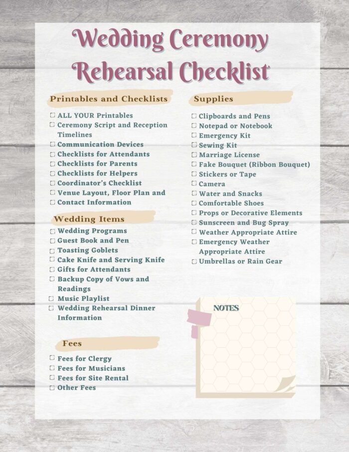 / Free Wedding Rehearsal Ceremony Checklist